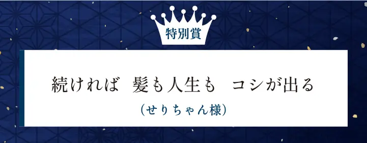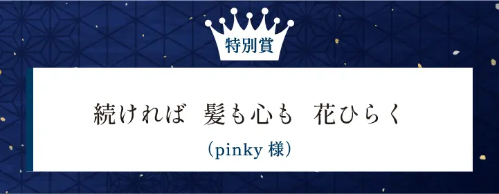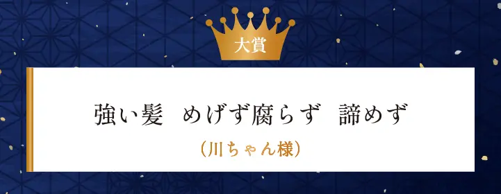 髪を通して人生の姿勢を映し出したような一句。日々のケアを重ねる中で、思うようにいかない日もあるけれど、それでも「諦めず続ける」ことが何よりの力になる——そんな想いが伝わってきました。しなやかに前を向く姿が、マイナチュレの理念と美しく重なり、深い共感を呼びました。(瀧澤)