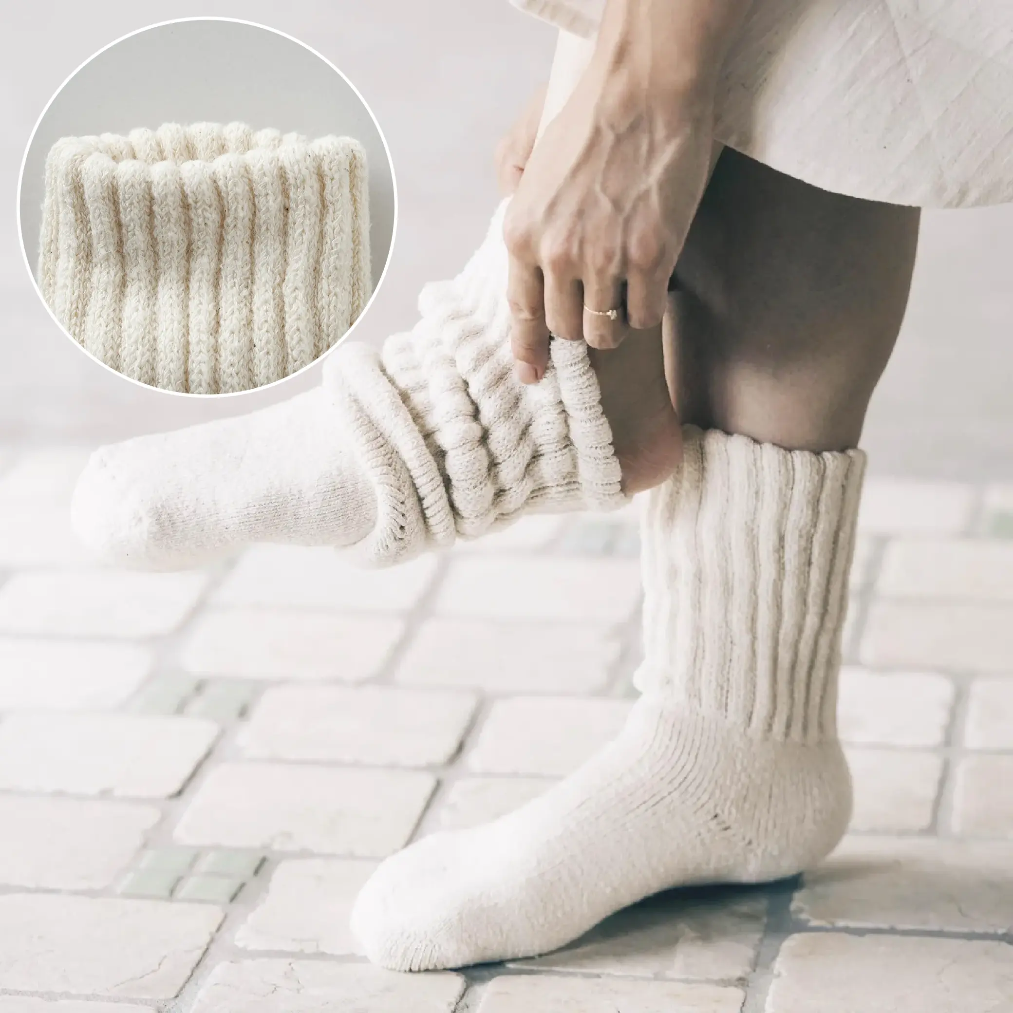 厚手なのに重さを感じず、ふわりとした温かさが続きます。自然栽培綿100%の糸を使うことで、環境にも肌にもやさしい履き心地を実現しています。