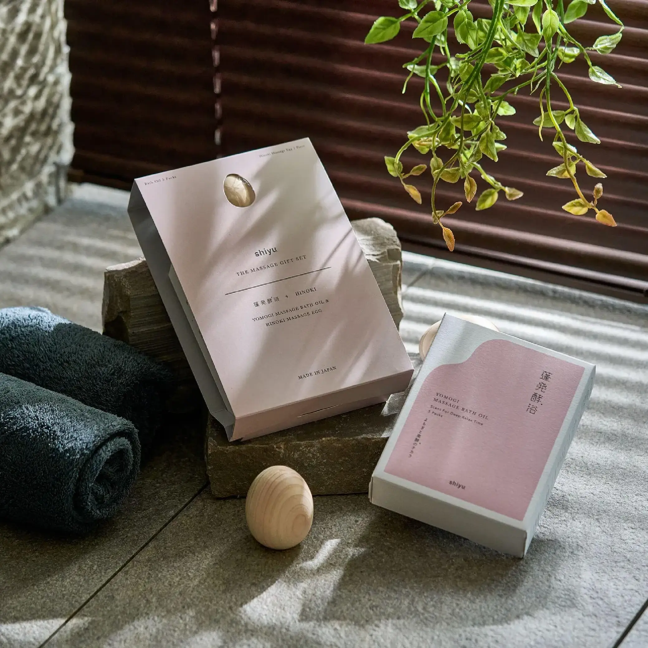 ・shiyu マッサージギフトセット(バスオイル5包、ヒノキマッサージエッグ1個)